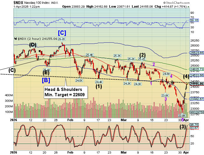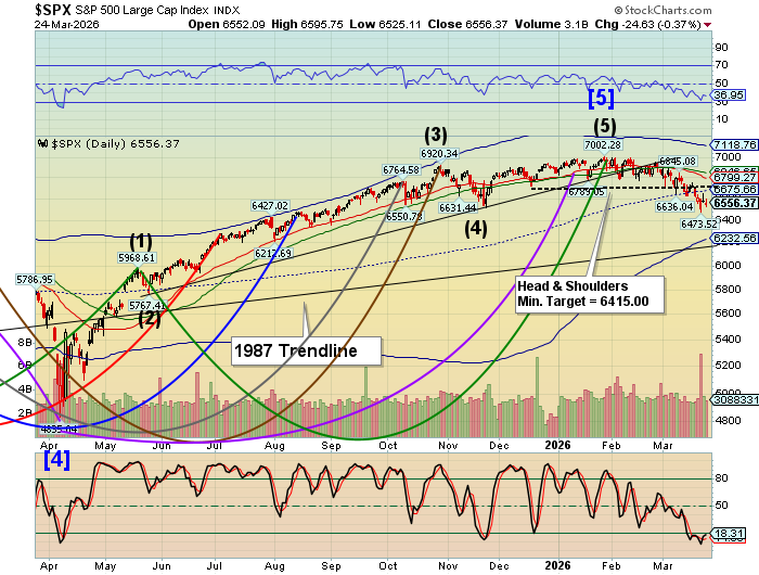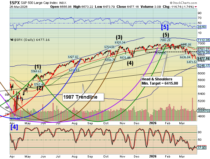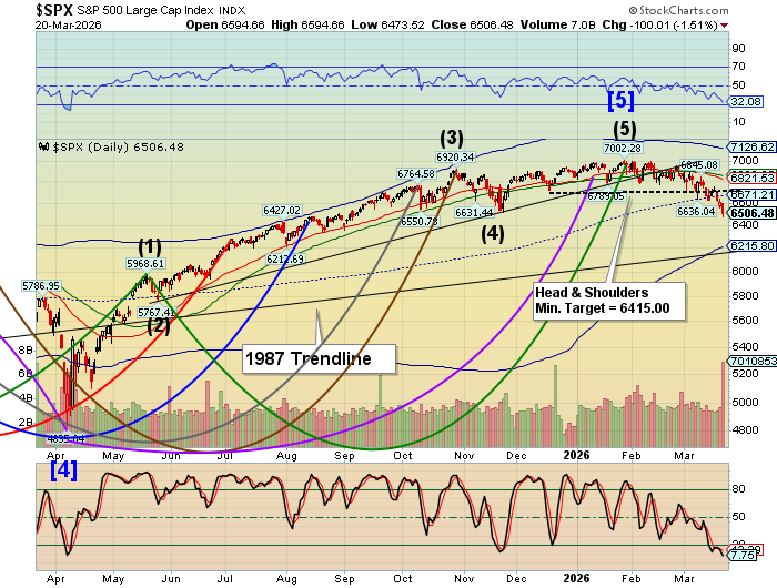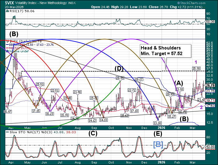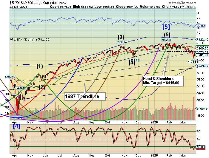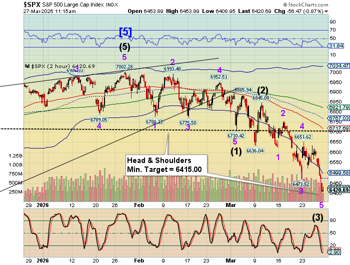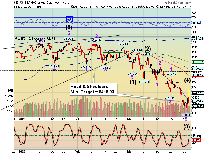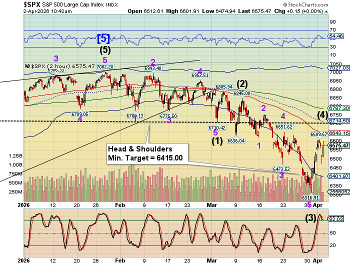 SPX futures made a massive round trip over the weekend from a low of 6433.10 to a morning high at 6698.00. The decline is complex, but the bounce was expected. Since the futures trading is thin, this bounce was likely the work of the dealers, trying to claw back out of short gamma. An attempt to make the neckline at 6710.00 may be in order. Once reset, the decline may resume in just a few hours. SPX may open beneath 6600.00. The decline isn’t over yet.