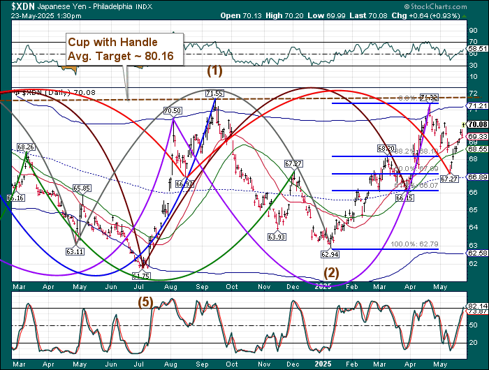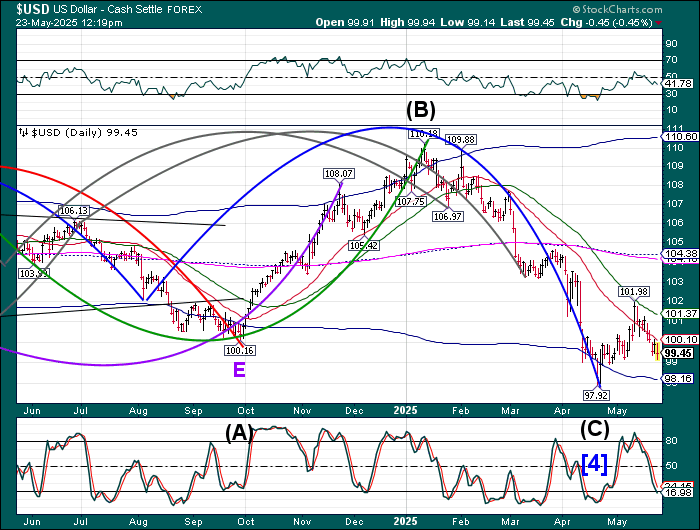 USD futures made a morning low at 99.03 while the cash market bottomed at 99.14. This action may complete the pullback and allow the USD to rally toward the Cycle Top. A rise above the Intermediate resistance at 100.10 may confirm the move by reiterating the buy signal. The rally may be fueled by short covering, as that is the dominant position held by traders and hedge funds.