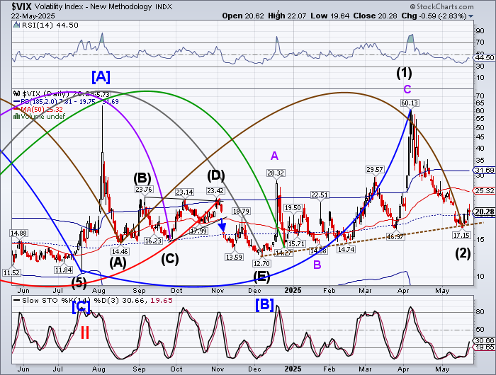 VIX futures are maintaining their elevation, but have not moved higher this morning. The Cycles Model anticipates a rising VIX until mid-June. The early April rally may be matched or exceeded.