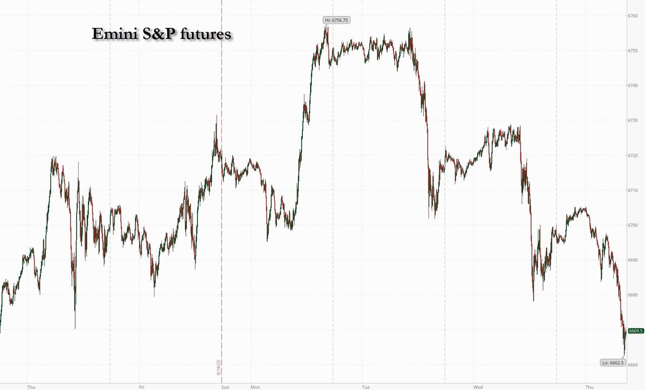 ZeroHedge reports, “US equity futures are lower after giving up overnight gains with bond yields reversing earlier losses and rising by 1-2bp and the USD is at session highs; yesterday was the best USD performance since Sep 2. As of 8:10am ET, S&P futures are down 0.4% after concerns over stretched valuations and the pace of interest-rate cuts dragged the main gauge back from a record high. Nasdaq futures are down 0.6% with Mag7 and TMT stocks weaker pre-market, with Oracle falling more than 2%. Intel is higher on reports that it is seeking an investment from AAPL. Defensives are leading Cyclicals pre-market. Commodities are mixed with silver +2% and coffee +1.5% the standouts. US launches a Section 232 (sectoral tariffs) probe on Machinery, Med Devices, and Robotics. Today’s macro data focus is on Q2 GDP data, Durable / Cap Goods, Jobless data, Existing Home Sales, Adv. Goods Net-Exports, and Inventories. While none of these macro releases is expected to be market-moving, they may provide a holistic view of a stable / resilient economy that may be inflecting higher.”