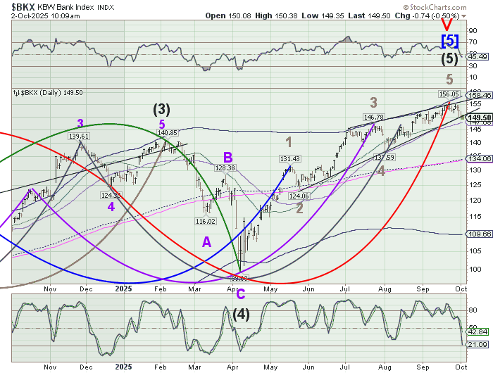 BKX has crossed beneath its Ending Diagonal trendline and Intermediate support/resistance at 150.01. This place BKX on a sell signal. Further confirmation may be made beneath the 50-day Moving Average at 147.68. This may be the canary i the coal mine telling us that liquidity is getting thin at the top. The initial target may be the mid-Cycle support at 134.06. However, should a panic develop, the April 7 low may be noted.